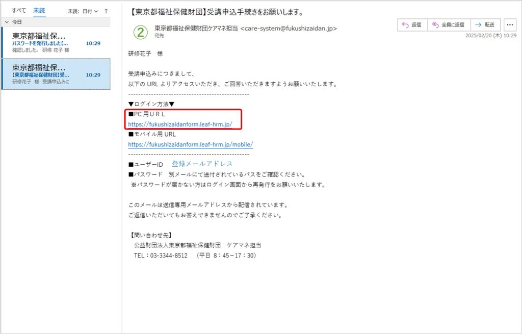 ① ご登録のメールアドレスに宛てて、申込完了メールが自動送信されます。メールが届かない場合は、メールボックスの迷惑メールもご確認ください。