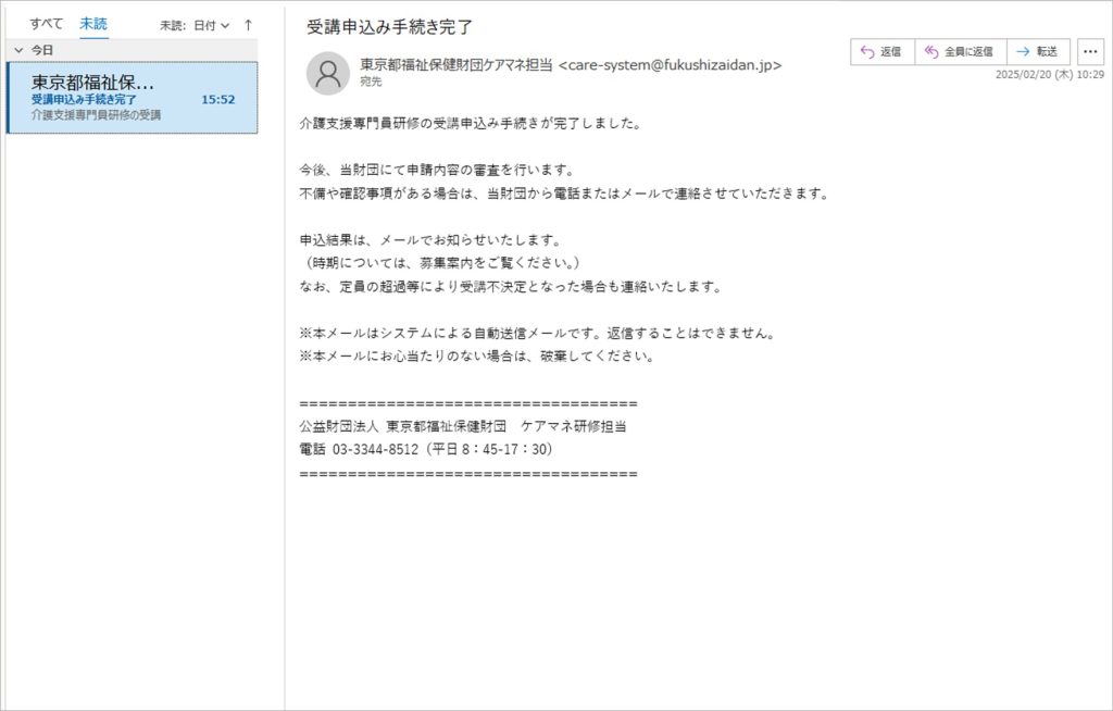 1-6 【申込完了の確認】財団から申込完了のメールを受信します。