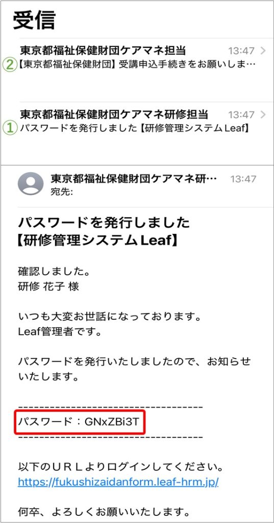 登録したメールアドレスに宛てて、メールが2件届きます。