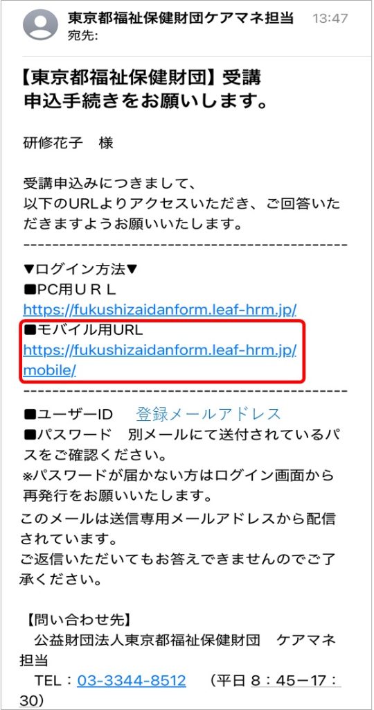 1-6 【申込完了の確認】財団から申込完了のメールを受信します。