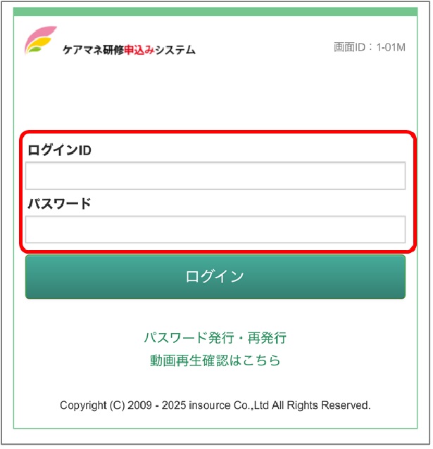 ① [1-3-②]で受け取ったメールから本登録画面を開き、ログインIDとパスワードを入力し、ログインします。