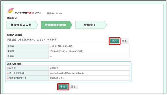 ② 記載内容に誤りがないことを確認し、「申込」ボタンをクリックします。