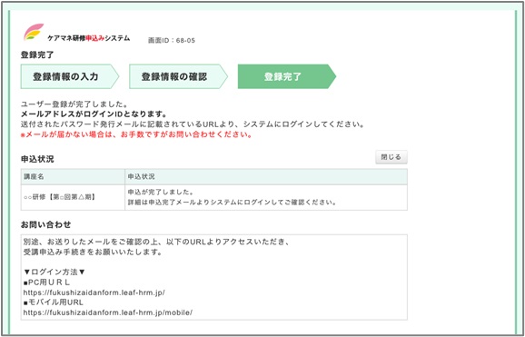 なお、メールの受信ができていない場合でも、[1-5]の方法で申込が完了しているかはご確認いただけます。