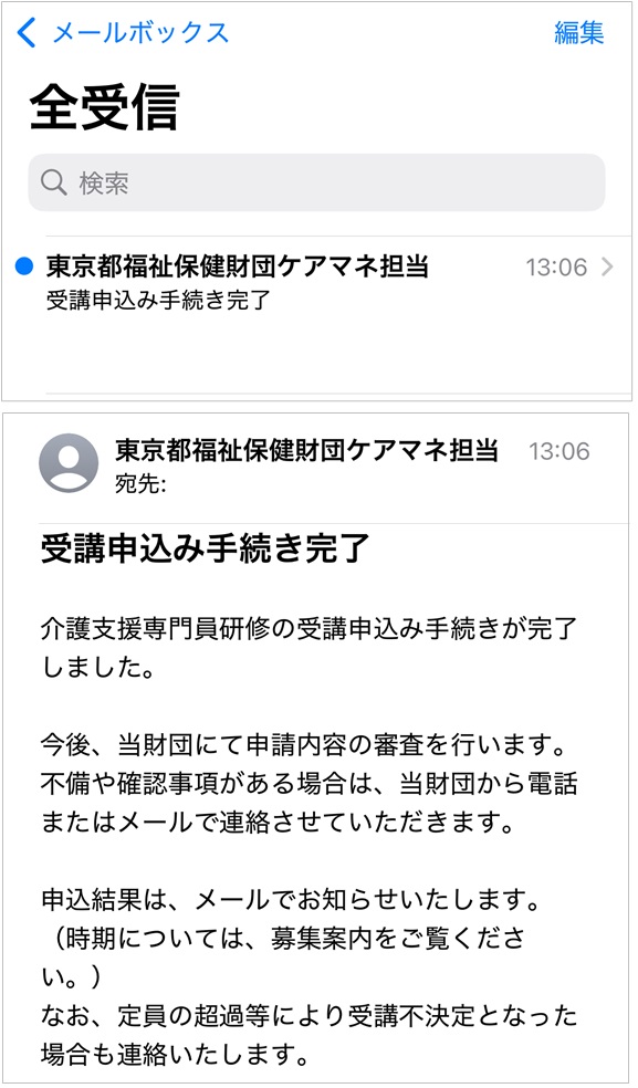 申込みを完了いただいた方には、募集案内に記載の期日に、ご登録いただたメールアドレスに宛てて、受講の可否についてご連絡いたします。