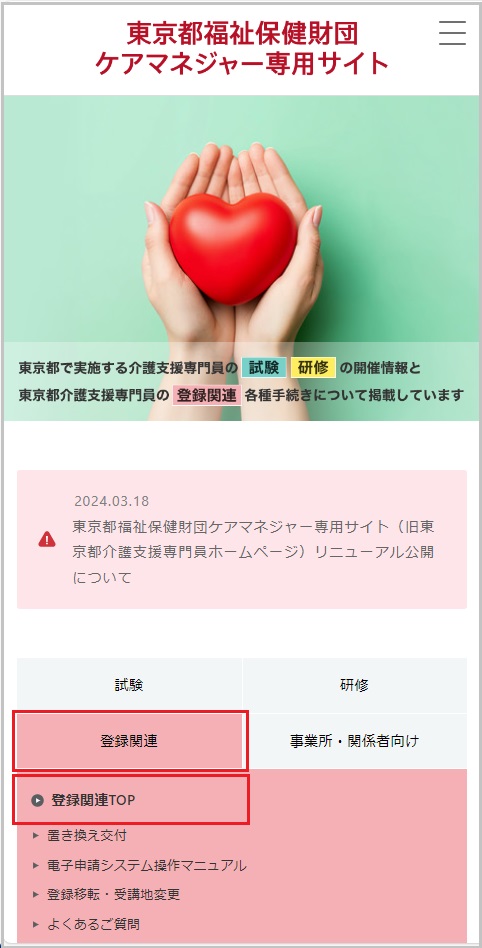 【Step1】東京都福祉保健財団への更新交付申請
