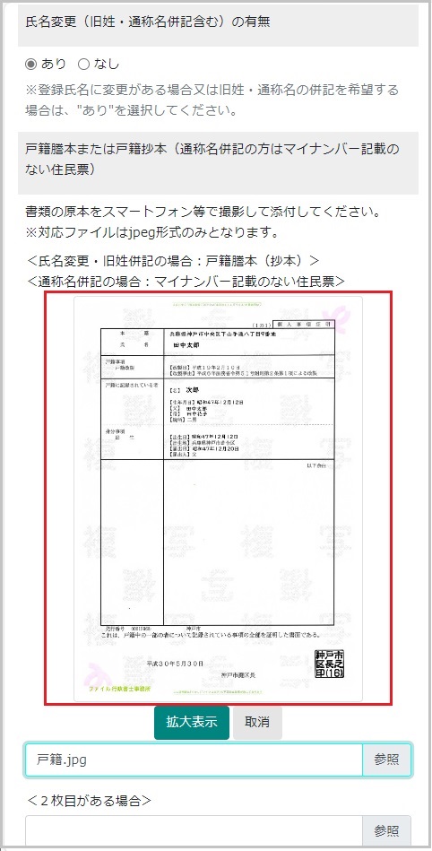 【13】戸籍抄本(謄本)は全体が反映するように添付します。(複数ページの場合は全ページ)