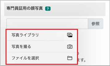 【14】顔写真を添付します。参照から添付元を選択します。(機種により表示が異なる場合あり)