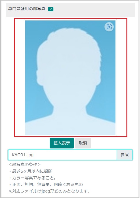 【15】必要に応じて顔写真を調整します。調整方法は顔写真の調整にてご確認ください。