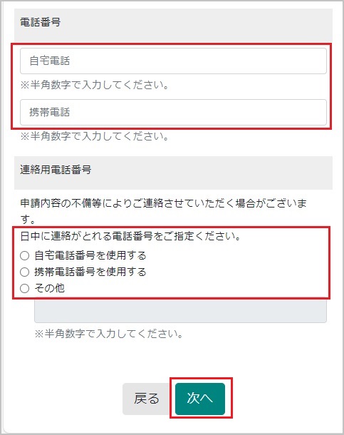 【19】電話番号を入力します。日中に連絡できる電話番号を選択してください。