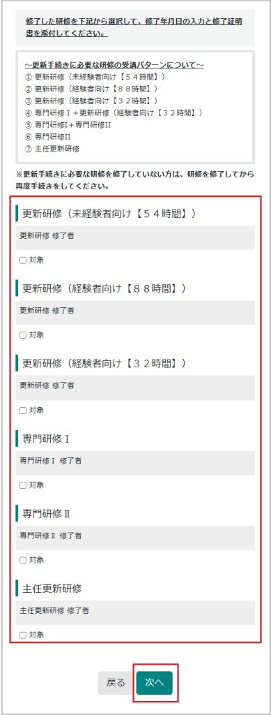 【21】今回修了した研修を選択し「次へ」進みます。