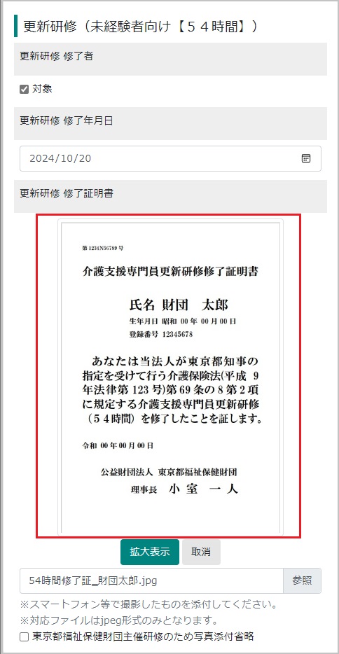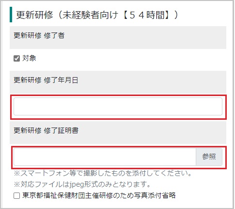 【22】研修の修了日を入力し、修了証明書を添付します。